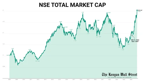 Kenyan Wall StreetNov 02, 2025 at 10:04NSE Market Cap Surges by KSh 1 Trillion in 2025 | The Kenyan WallstreetInvestor wealth on the NSE has risen by over KSh 1 trillion in 2025, driven by broad gains across all sectors with 52 of 60 counters trading positive.Kenyan Wall StreetNov 02, 2025 at 10:04NSE Market Cap Surges by KSh 1 Trillion in 2025 | The Kenyan Wallstreet